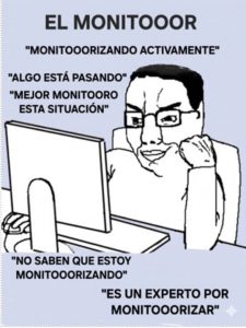 El meme “monitorear la situación” describe con exactitud lo que vivimos en estos días. Nos ubica en una sala de crisis, nos da sensación de control, ilusión de participación cívica. Pero nos deja quietos, nada más esperando el misil. Con un costo en salud que las plataformas y medios corporativos se esforzarán en negar.